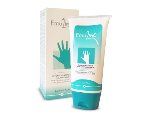 The EmuLine® Intensive Anti-Age Hand Care has been especially developed to moisten, nourish and prevent aging of the hands, restoring the youthful appearance lost through the passage of time and the onslaught of external factors. Its Emu Oil formula provides great quantities of natural antioxidants that prevent premature aging of the skin. Its high level of monounsaturated and polyunsaturated fatty acids, mainly Oleic and Linoleic Acids, allow it to penetrate deep down into the layers of the skin quickly and easily, applying a deep emollient and moisturizing action. It regenerates tissues, prevents and eliminates blotchy skin. Its composition includes a Moisturizing Factor, a group of substances whose function is to re-hydrate the skin through the reconstruction of the “natural moisturizing factor” of the damaged tissue. The Q10 Energisome shields the hands from the constant aggression exposure, protecting cell structure. The Slimy Snail Secretion helps renew and exfoliate skin tissues, improving texture and increasing vitality. The UVB Filter prevents photoaging caused by damaging sun rays